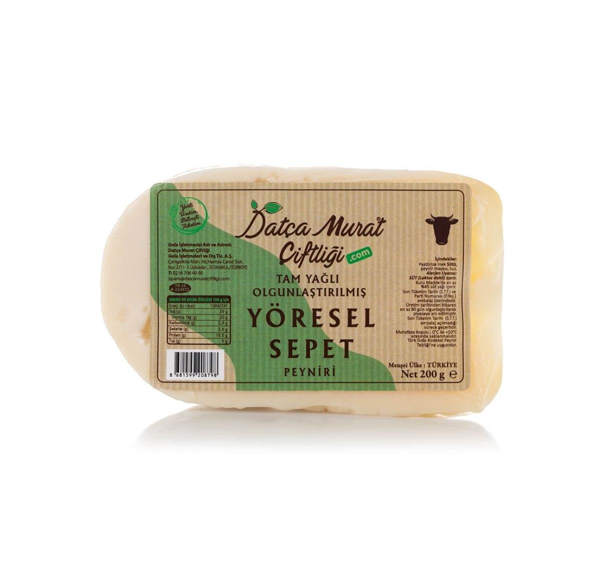 Ege’nin geleneksel sütçülük kültüründen ilhamla üretilen Tam Yağlı Yöresel Sepet Peyniri, Datça Murat Çiftliği’nin katkısız ve doğal lezzet anlayışını sofranıza taşıyor. Tam yağlı inek sütünden geleneksel sepet kalıplarda şekil verilerek hazırlanan bu peynir; yoğun aroması, hafif tuzlu tadı ve kremamsı yapısıyla kahvaltı sofralarının vazgeçilmezi olmaya aday.
