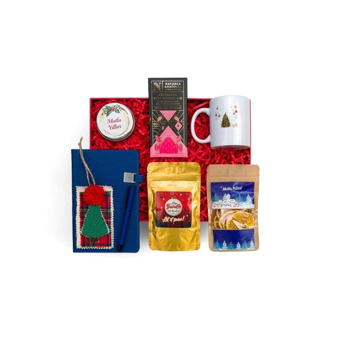 • Yeni Yıl Temalı Metal Kutuda Kokulu Mum • Artizanal Çilekli Sütlü Tablet Çikolata 100 g – Naturca • Portakal Kurusu 50 g – Datça Murat Çiftliği • Yeni Yıl Temalı Kupa • Lacivert Termo Deri Defter • Rubber Gövde Roller Kalem • Punch İşlemeli Ağaç Süsü • Sıcak Çikolata 100 g • Özel Tasarım Kurumsal Hediye Kutusu
